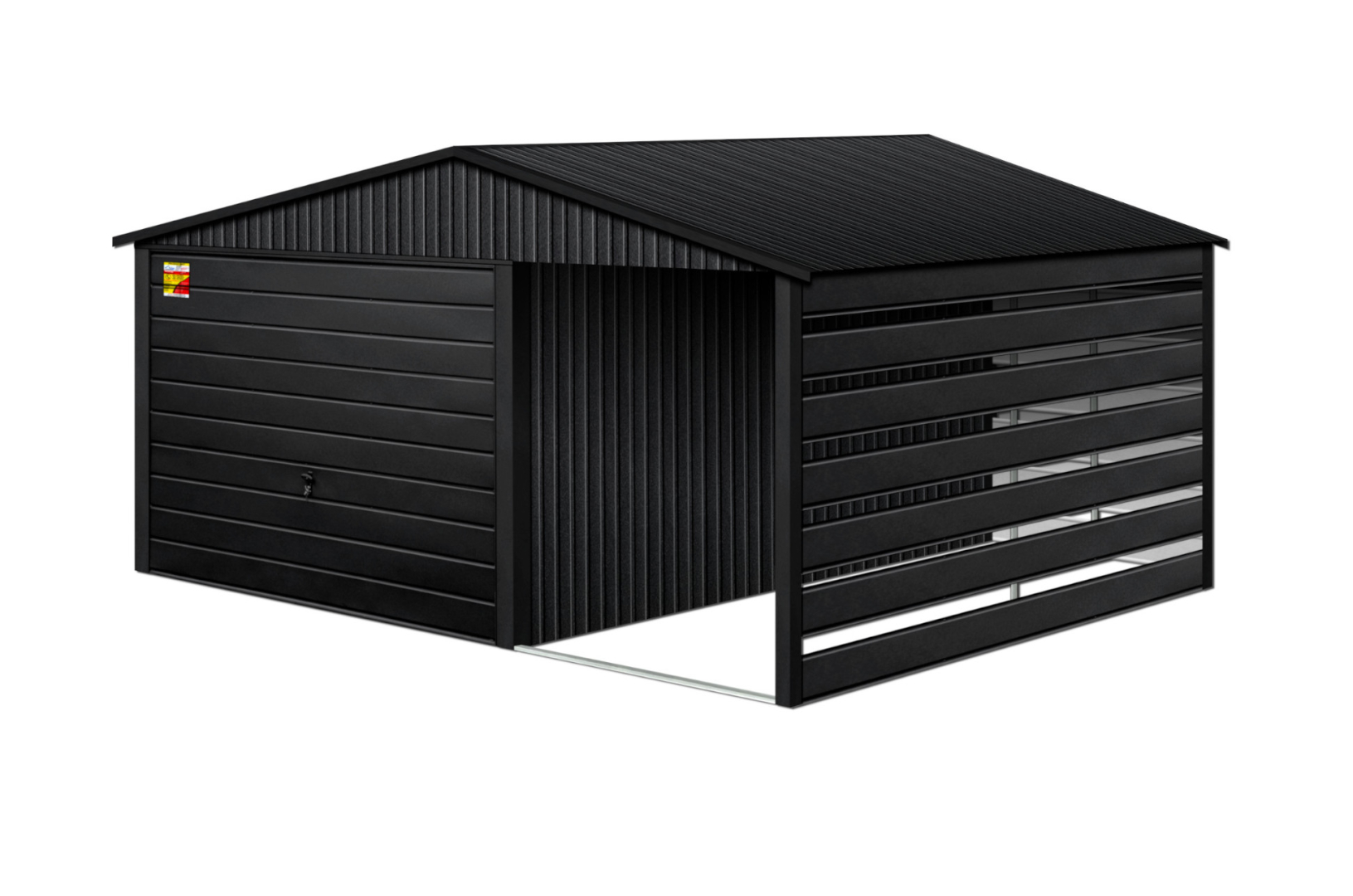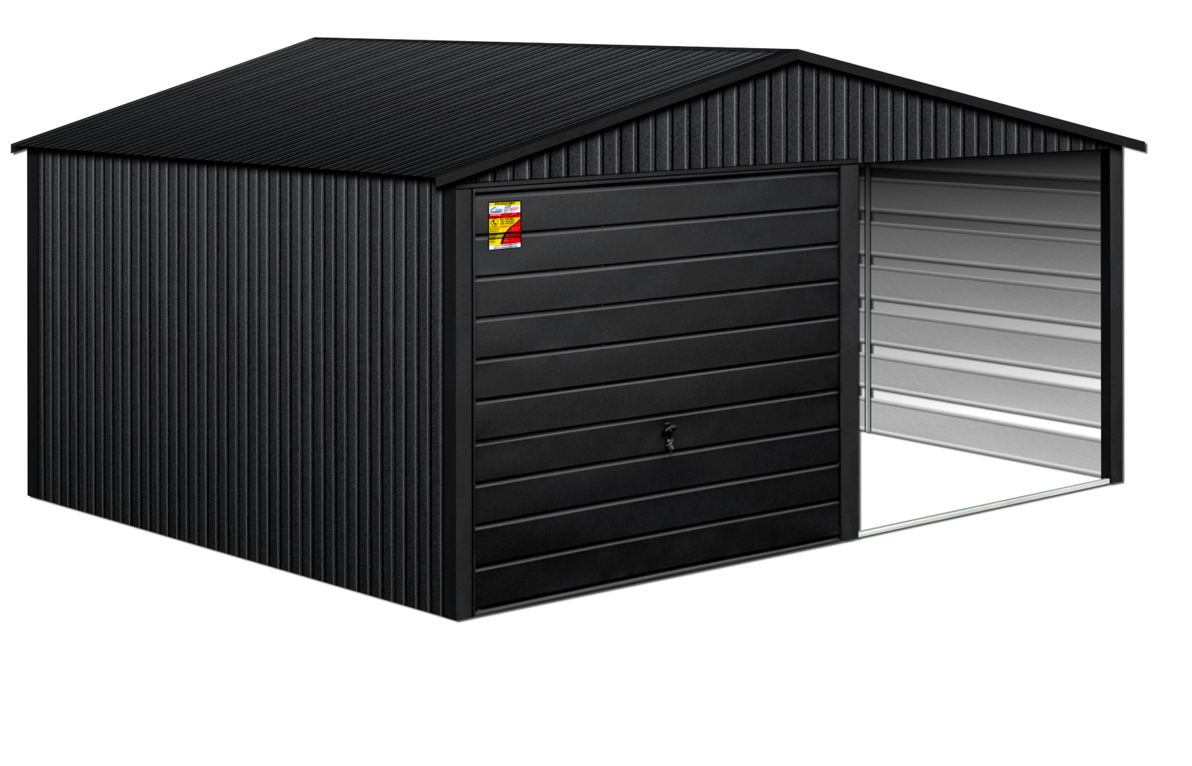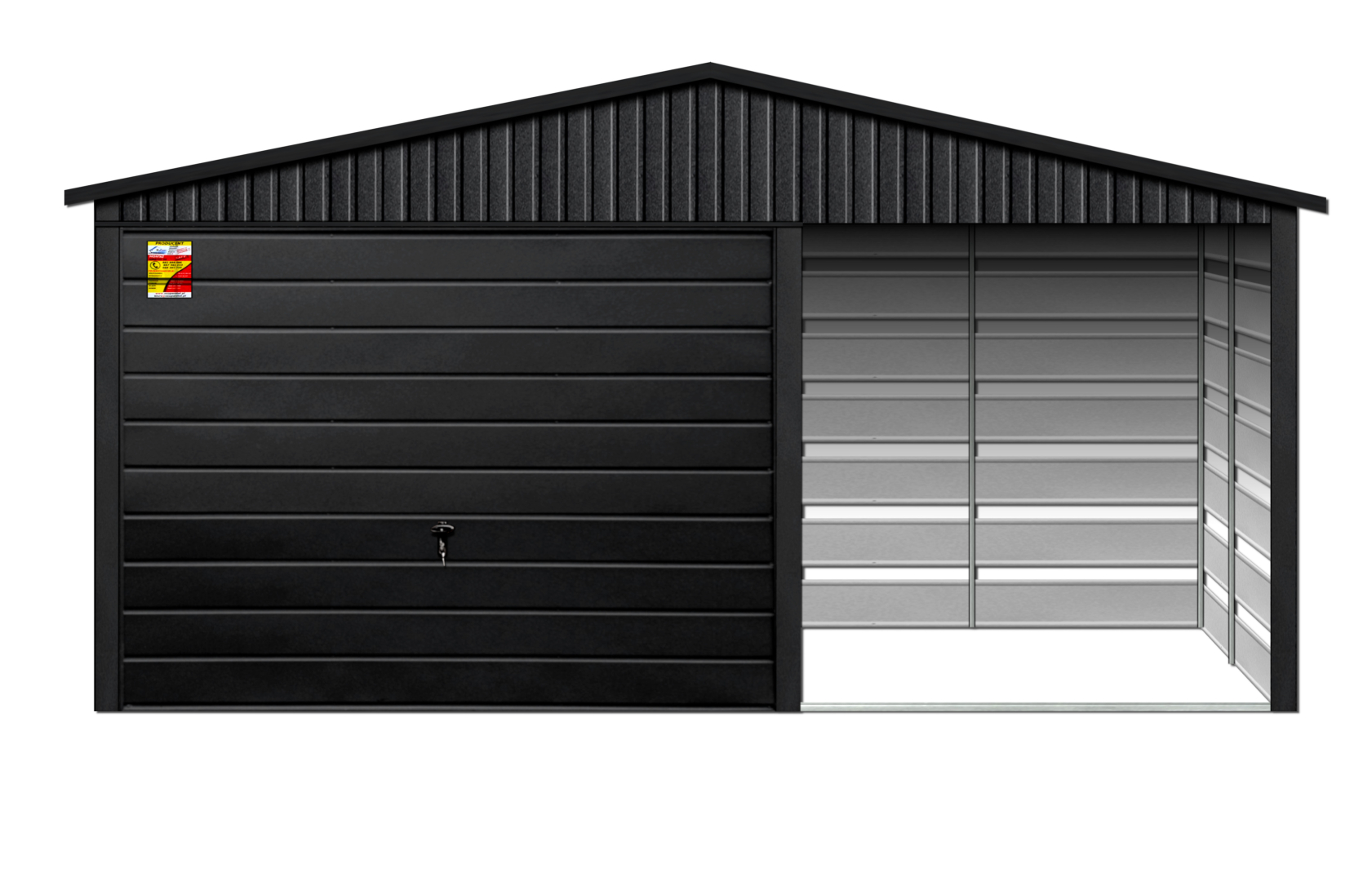 GARAŻ LUX 5X8 Z WIATĄ SMK – DWUSPADOWY DACH, BRAMA UCHYLNA, OKUCIA BLACHARSKIE DACHU I NAROŻNIKÓW