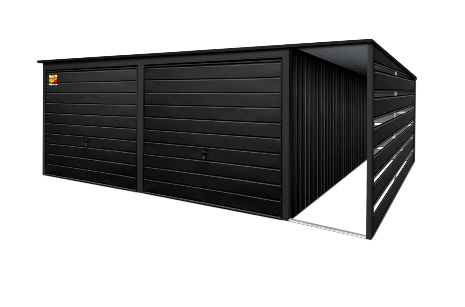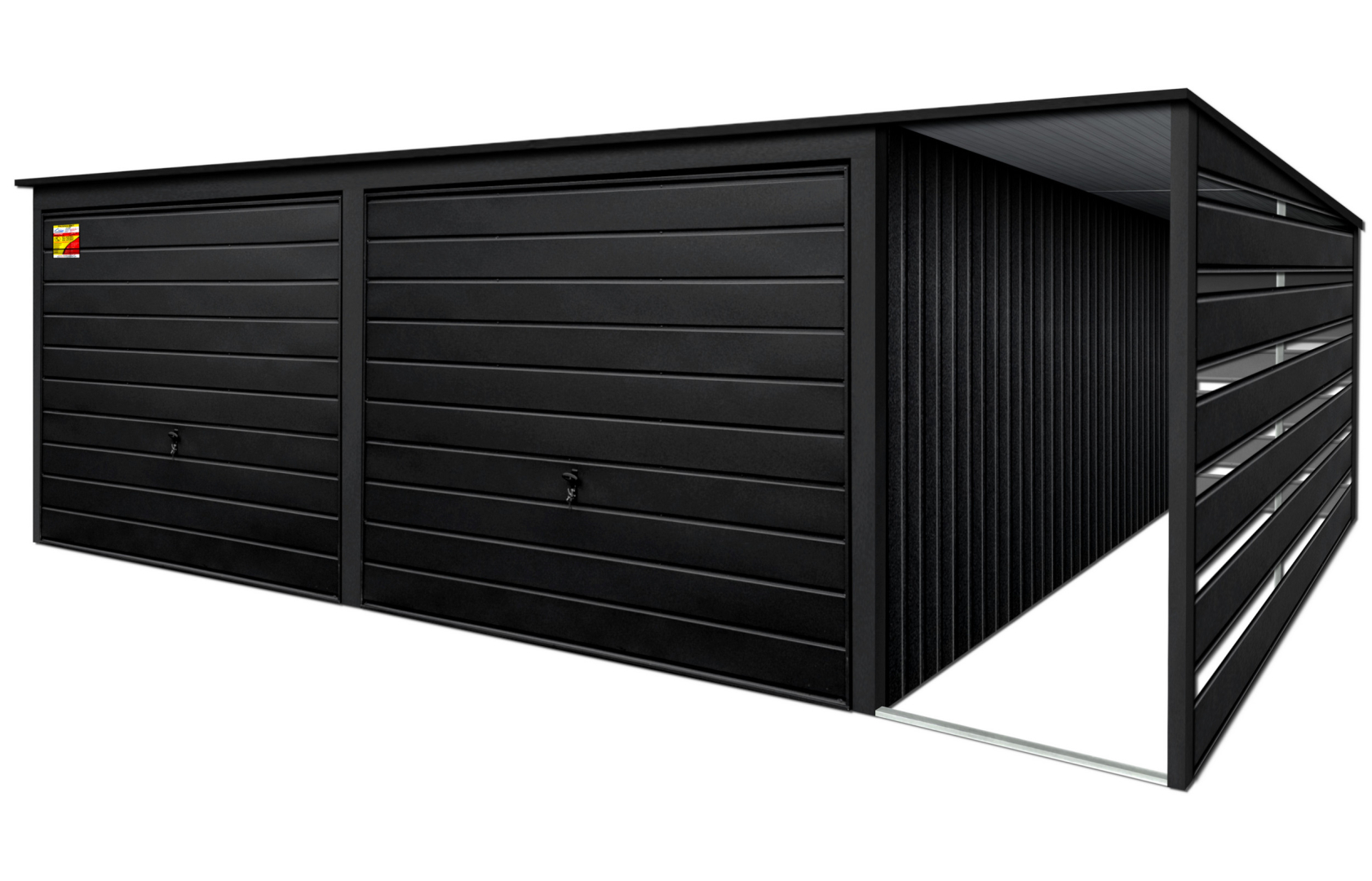 GARAŻ LUX 8X6 Z WIATĄ SMK – SPAD DACHU DO TYŁU, DWIE BRAMY UCHYLNE, OKUCIA BLACHARSKIE DACHU I NAROŻNIKÓW
