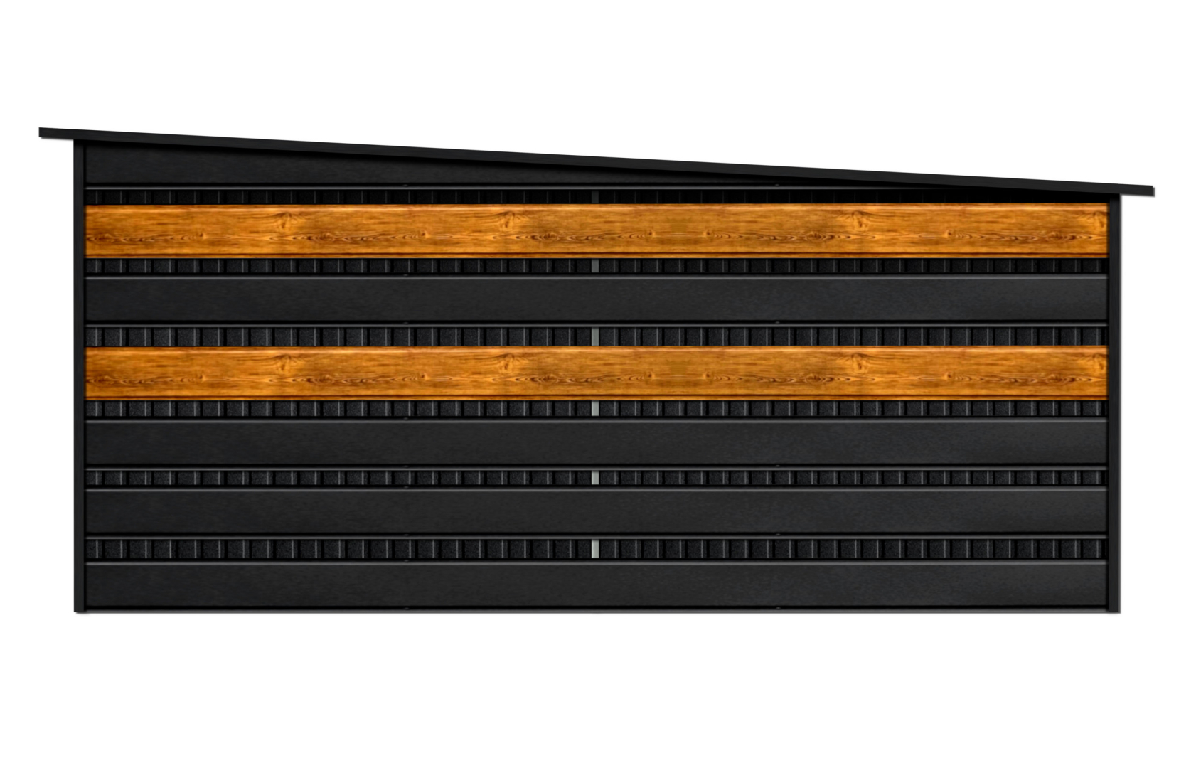 - panele światy w Systemie SMK w kolorze CZARNY MAT + 2 pasy paneli w kolorze drewnapodobnym SOSNA