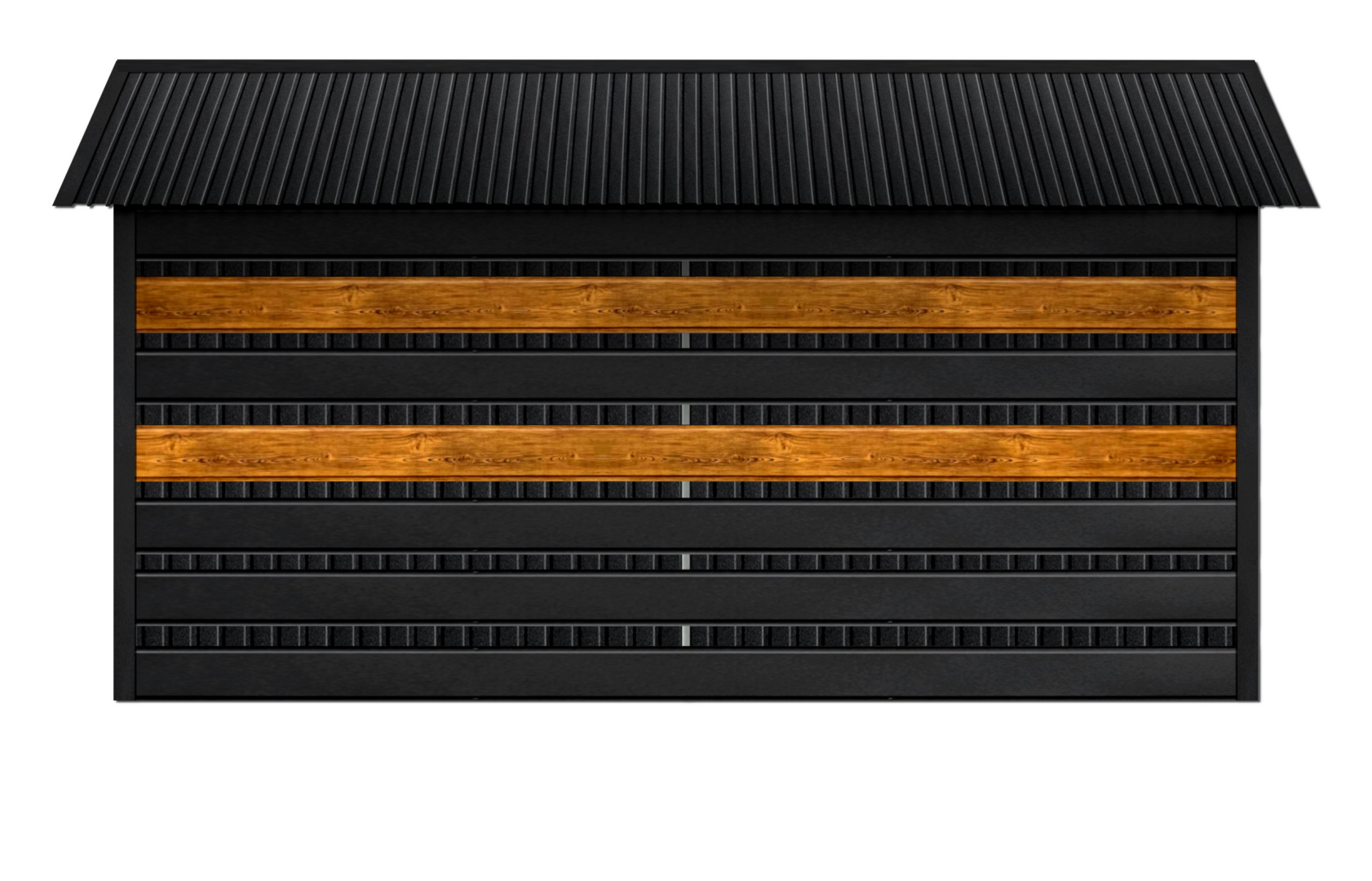 - panele światy w Systemie SMK w kolorze CZARNY MAT + 2 pasy paneli w kolorze drewnapodobnym SOSNA
