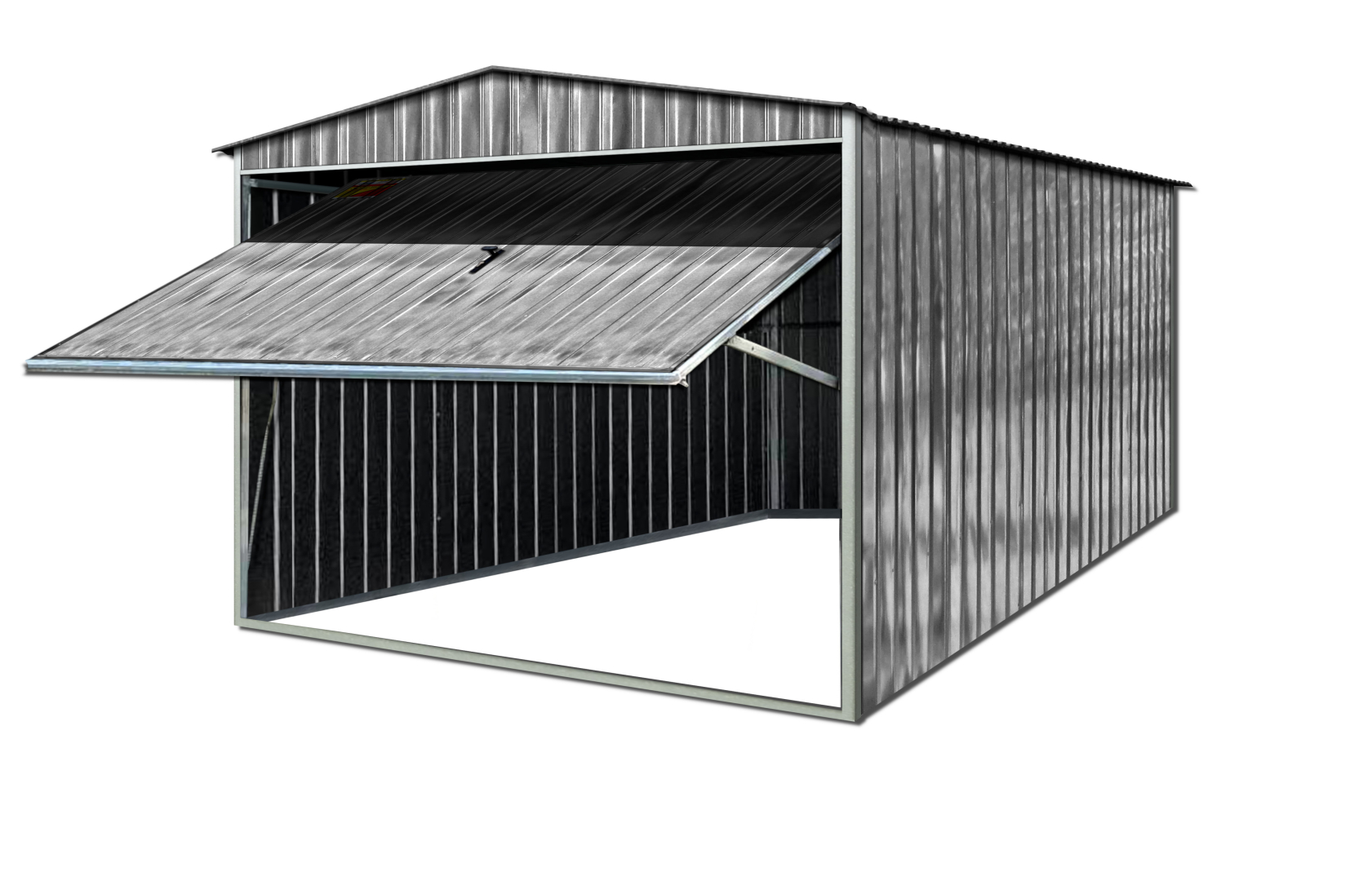 Garaż blaszany 2X7 ocynkowany – Dwuspadowy dach, brama uchylna