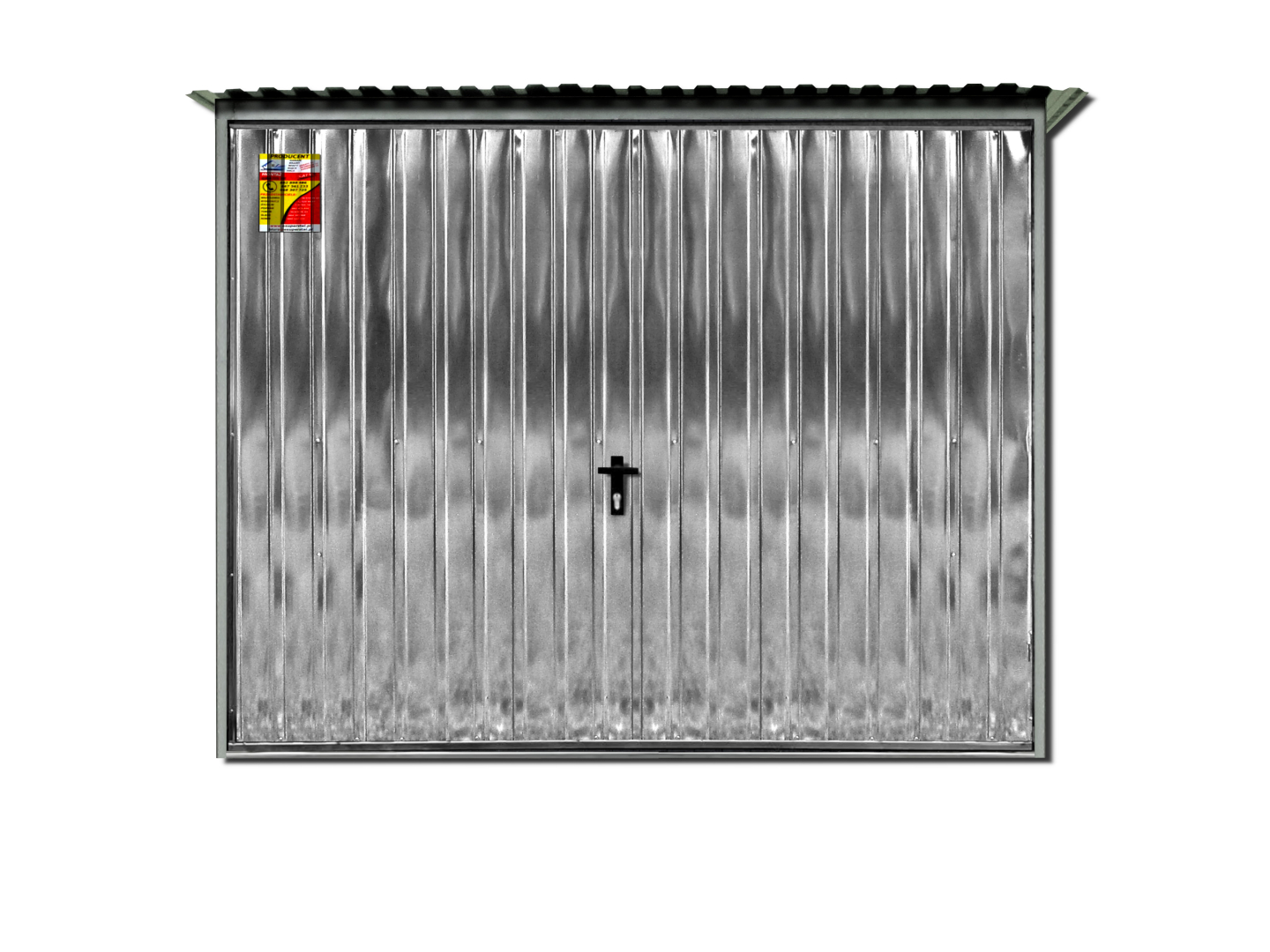 Garaż blaszany 7X6 ocynkowany – Dwuspadowy dach, bramy uchylne