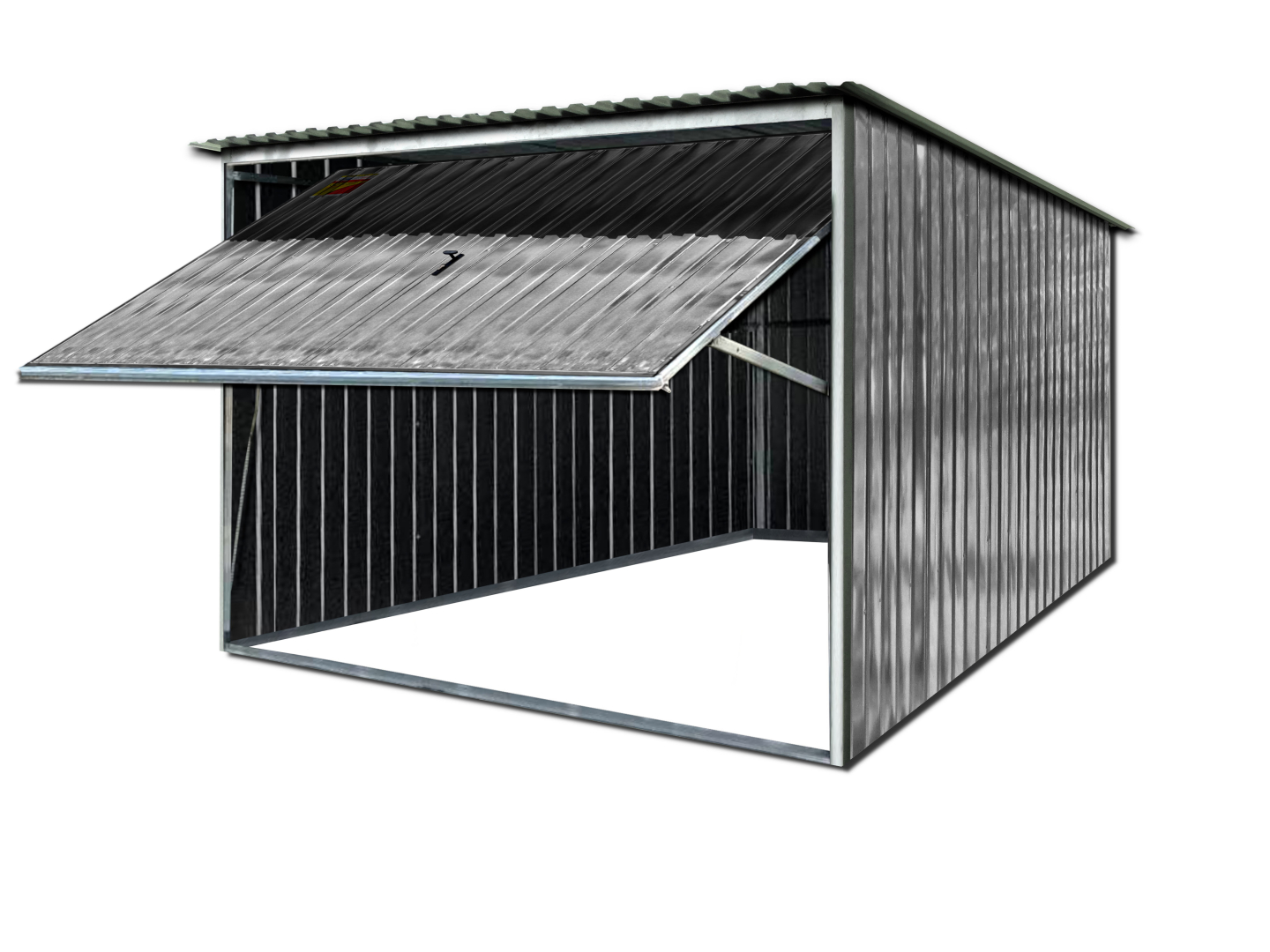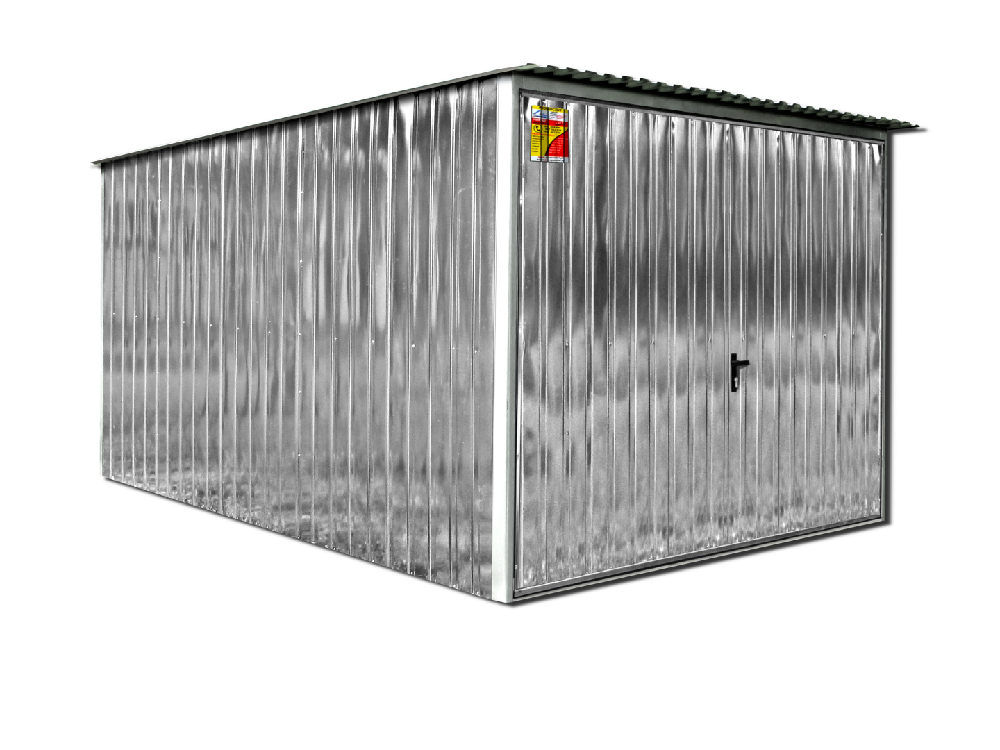 Garaż blaszany 4X6 ocynkowany – Dwuspadowy dach, brama uchylna