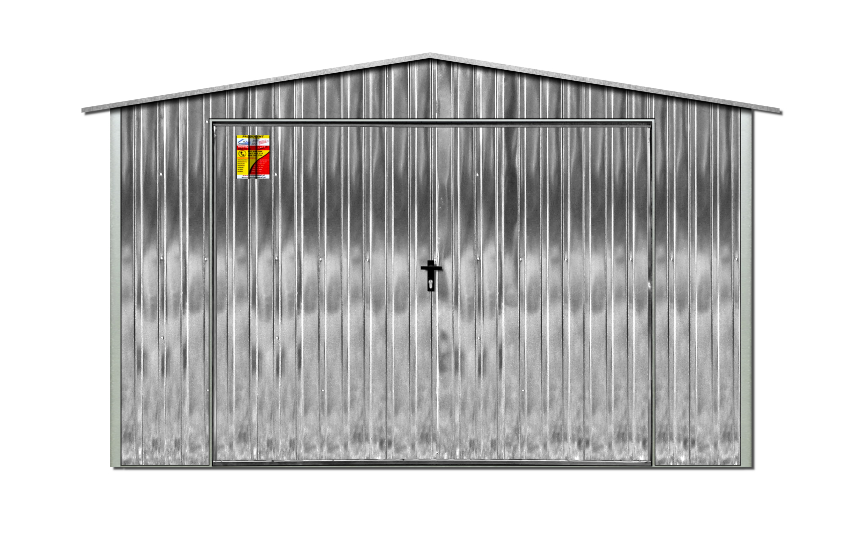 Garaż blaszany 4X7 ocynkowany – Dwuspadowy dach, brama dwuskrzydłowa