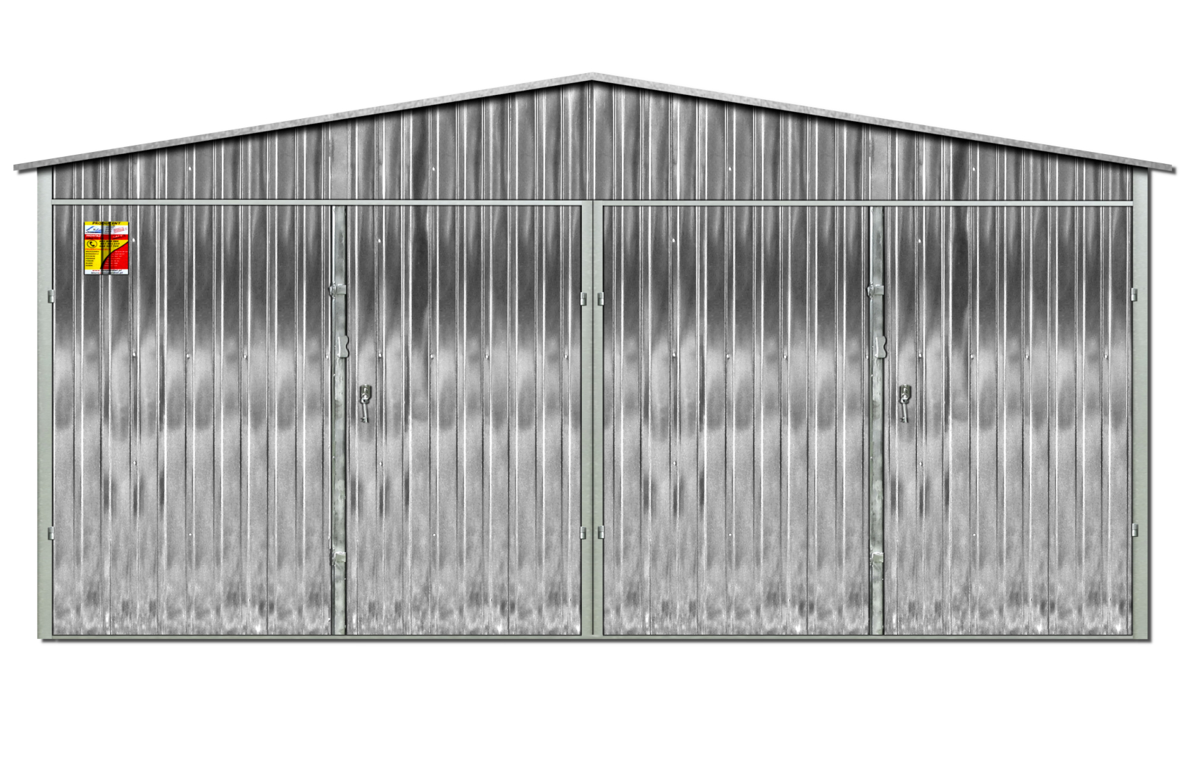 Garaż blaszany 6X7 ocynkowany – Dwuspadowy dach, bramy dwuskrzydłowe