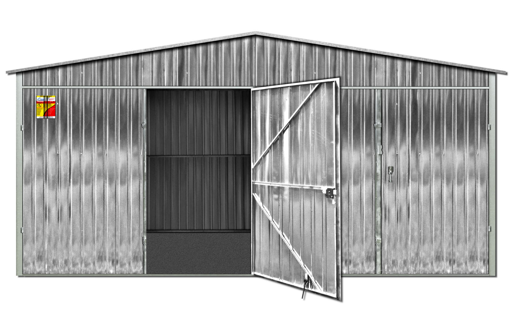 Garaż blaszany 4X6 ocynkowany – Dwuspadowy dach, brama dwuskrzydłowa