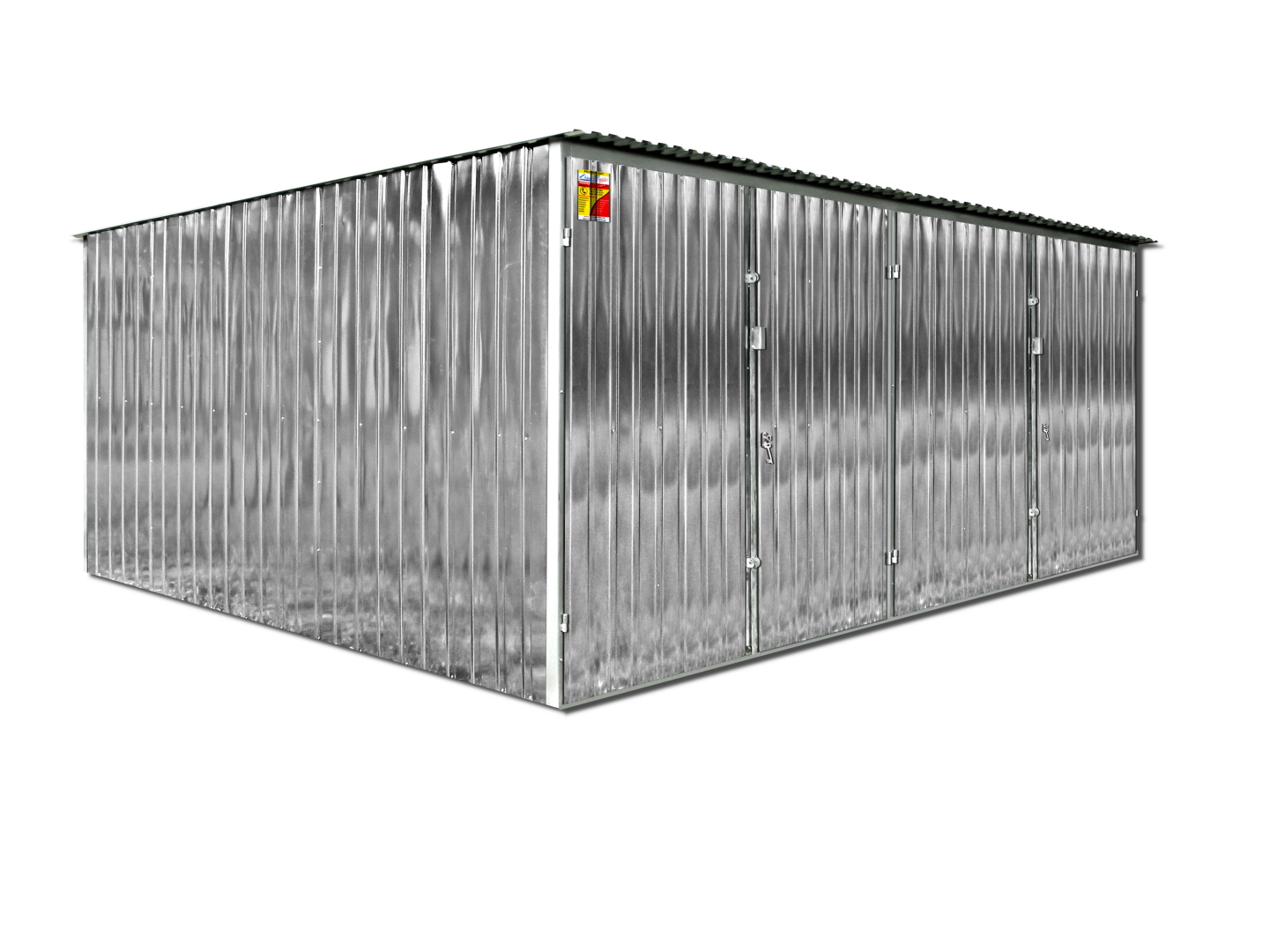 Garaż blaszany 7X6 ocynkowany – Dwuspadowy dach, bramy dwuskrzydłowe