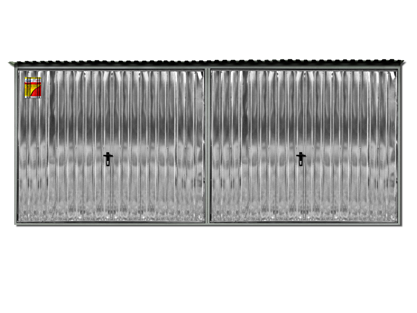 Garaż blaszany 2X6 ocynkowany – Dwuspadowy dach, brama dwuskrzydłowa