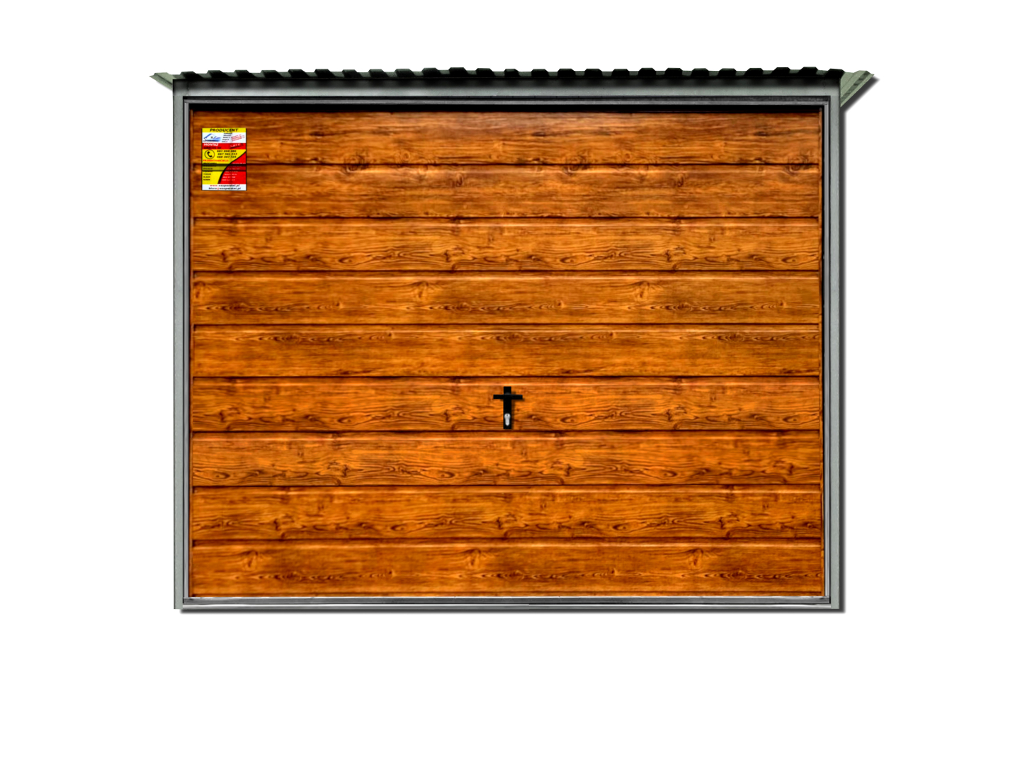 Garaż blaszany 2X3 LUX drewnopodobny – Dwuspadowy dach, brama uchylna