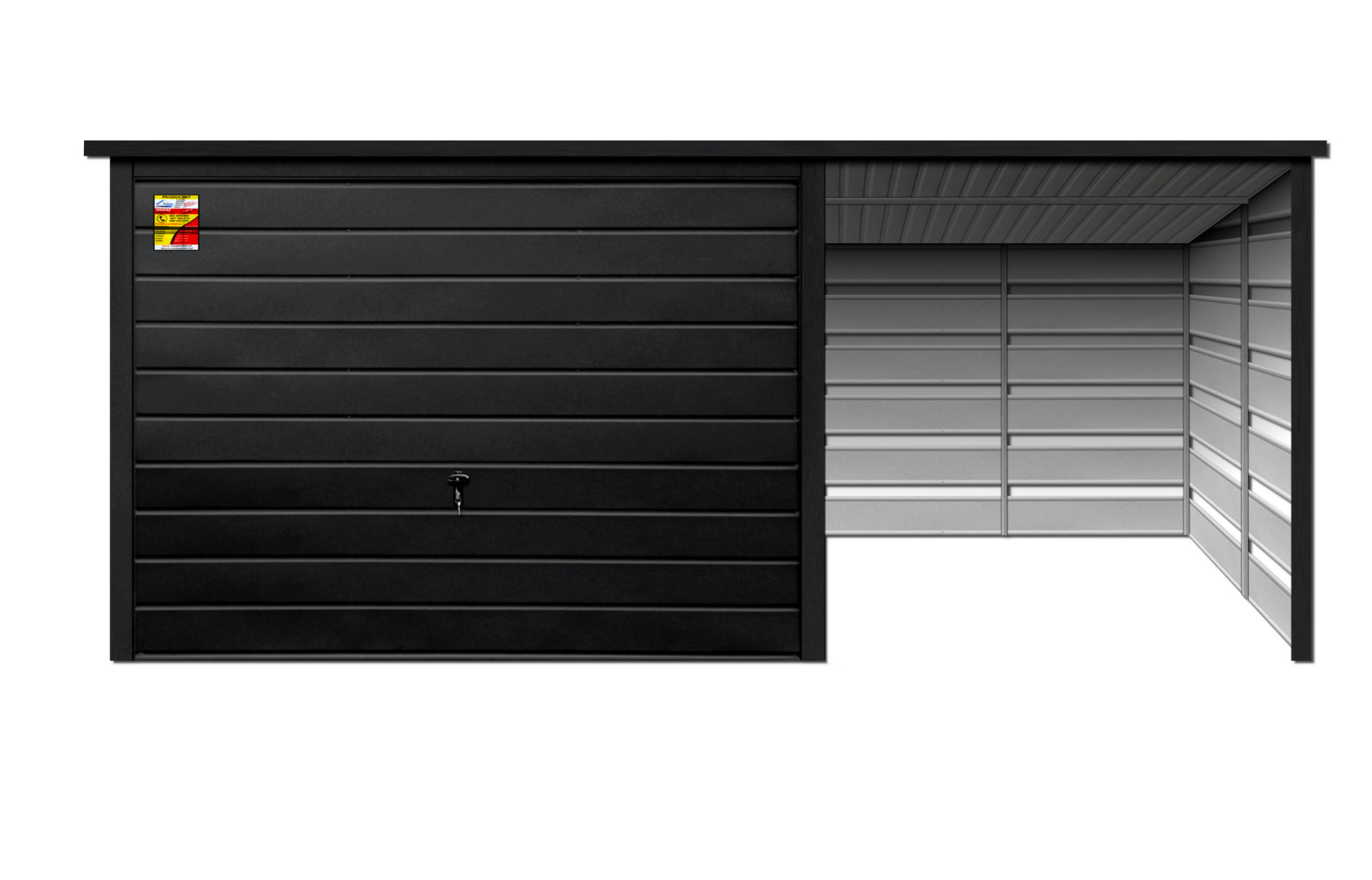 Oferowanym produktem jest innowacyjny garaż blaszany z serii LUX, wzbogacony w dobudowaną wiatę, wykonaną w nowoczesnym Systemie SMK!