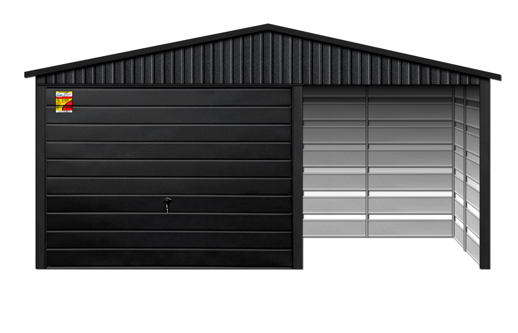 Oferowanym produktem jest innowacyjny garaż blaszany z serii LUX, wzbogacony w dobudowaną wiatę, wykonaną w nowoczesnym Systemie SMK!