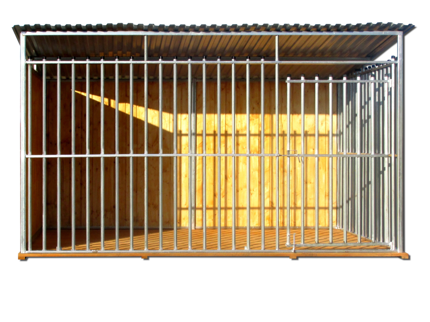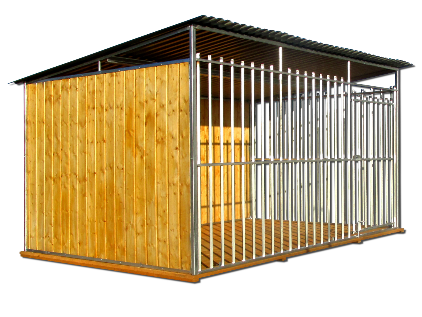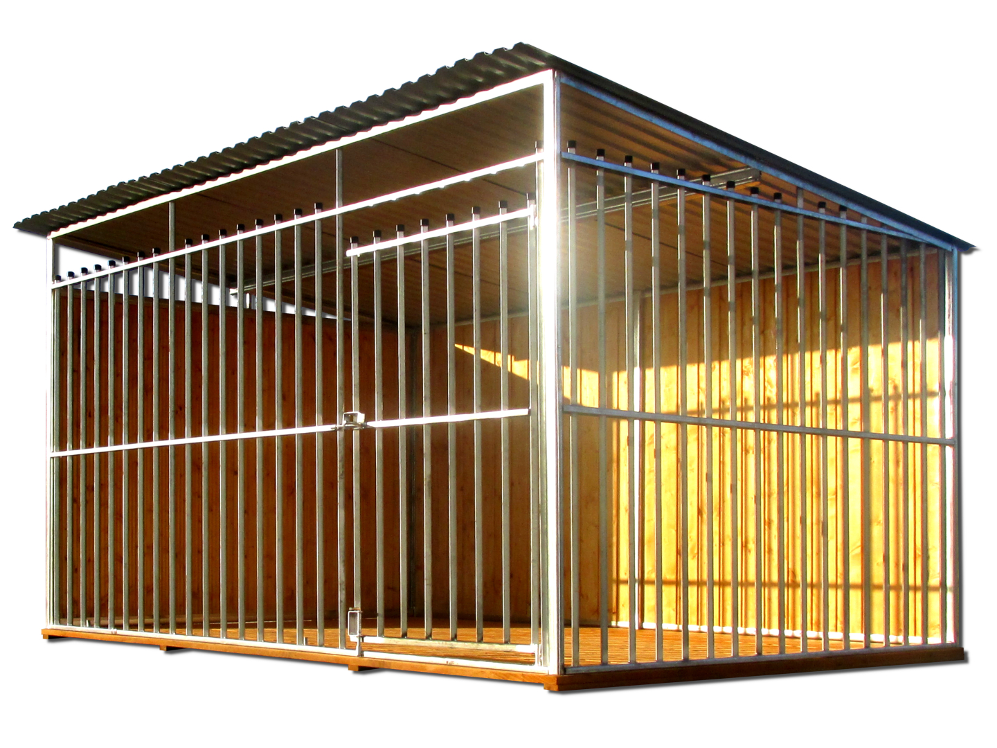 KOJEC DLA PSA 2X2 – KOJEC Z PROFILI OCYNKOWANYCH Z DREWNIANĄ PODŁOGĄ, ZABUDOWANYMI ŚCIANAMI I ZAŚLEPKAMI