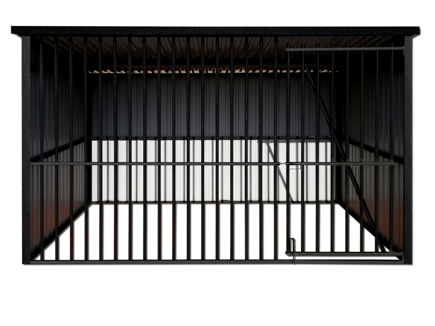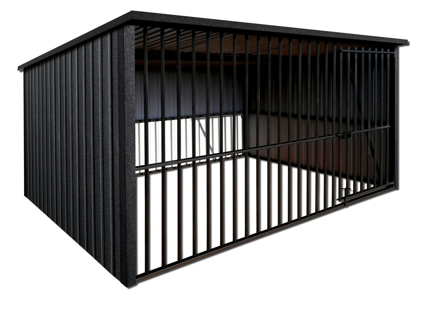 Oferowanym produktem jest kojec dla psa wykonany z czarnych profili, zawijanych-niezgrzewanych, wzbogacony w okucia blacharskie i ściany zabudowane blachą w kolorze GRAFIT MAT!