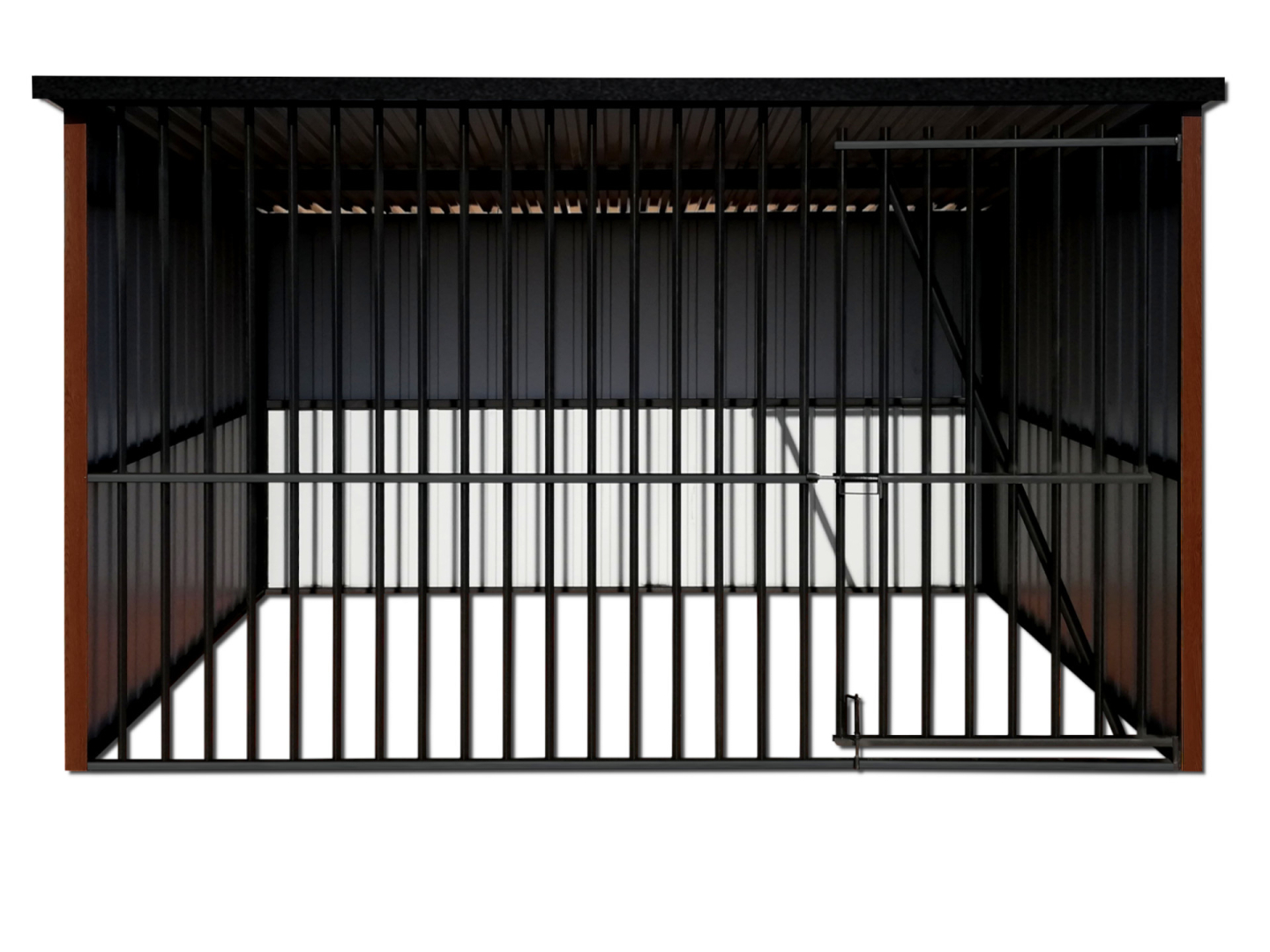 Oferowanym produktem jest kojec dla psa wykonany z czarnych profili, zawijanych-niezgrzewanych, wzbogacony w okucia blacharskie i ściany zabudowane blachą drewnopodobną!