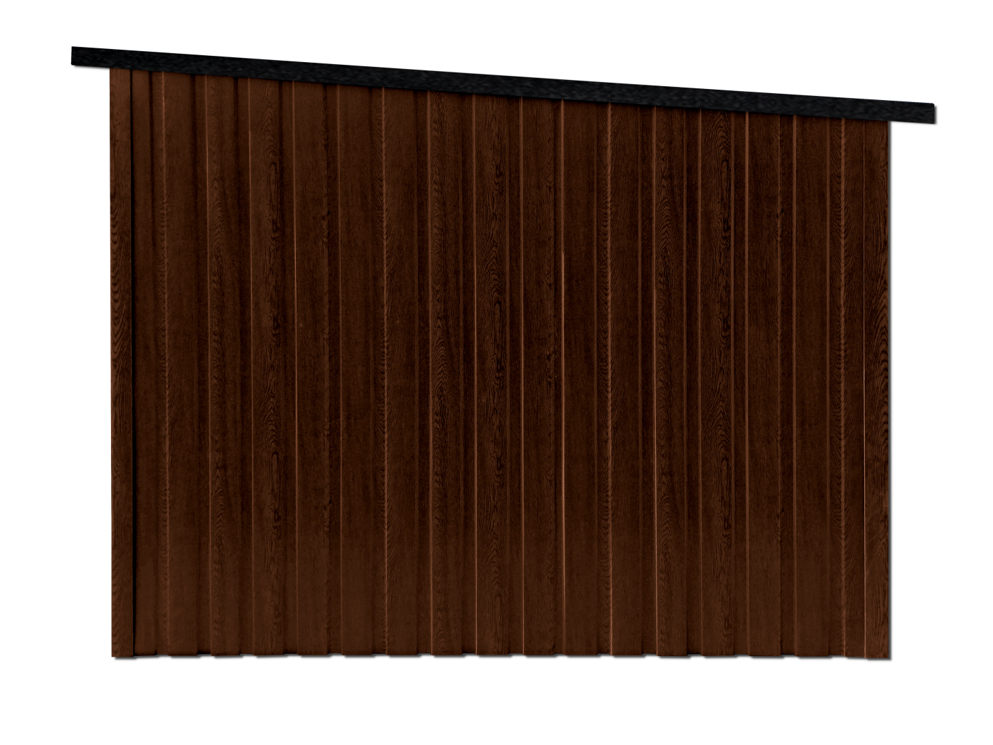 KOJEC DLA PSA 3X2 – KOJEC Z CZARNYCH PROFILI, Z OKUCIAMI, ZABUDOWANY BLACHĄ DREWNOPODOBNĄ W KOLORZE ORZECH.