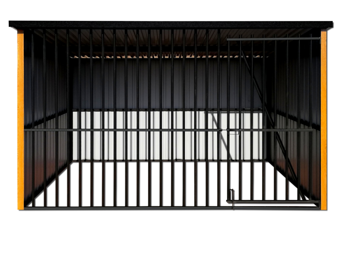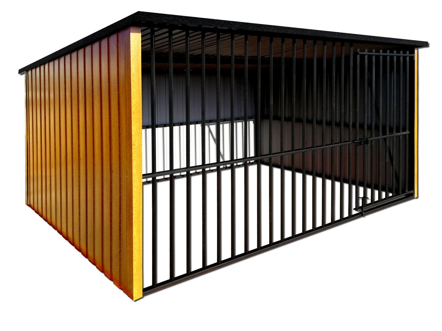 Oferowanym produktem jest kojec dla psa wykonany z czarnych profili, zawijanych-niezgrzewanych, wzbogacony w okucia blacharskie i ściany zabudowane blachą drewnopodobną!
