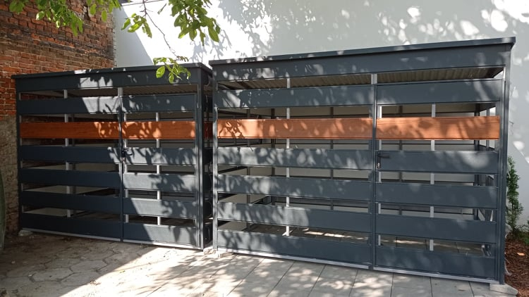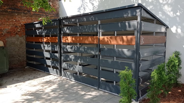 W związku ze zmianą technologii producent zastrzega sobie prawo do zmiany koloru malowanej konstrukcji wiaty śmietnikowej